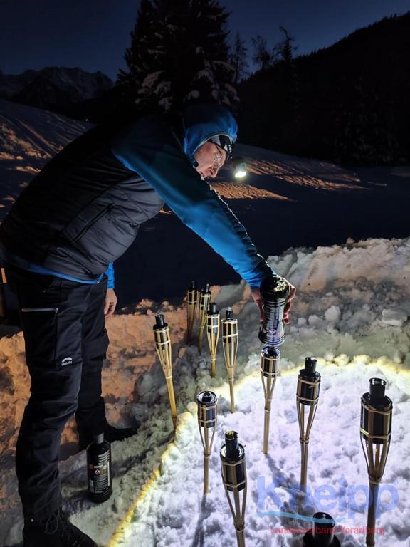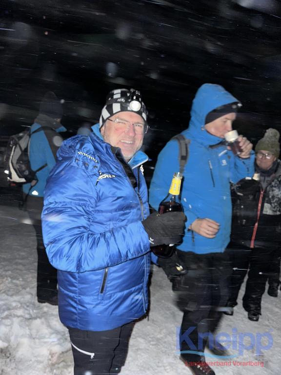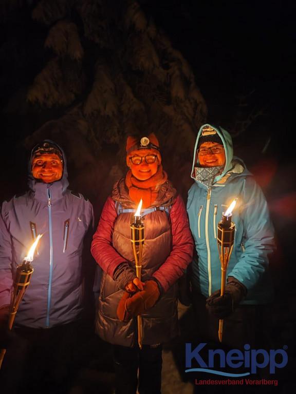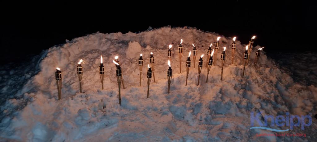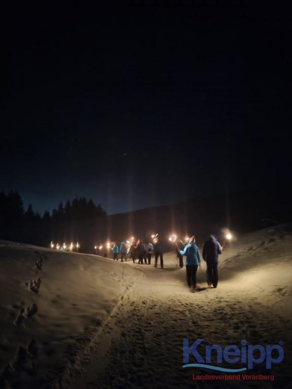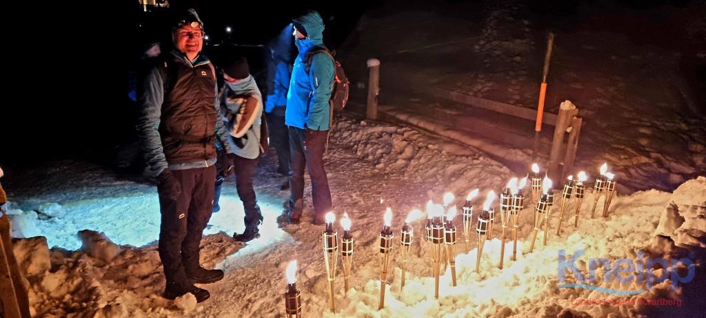 Am 11.1.2024 trafen sich 20 Kneipp-Mitglieder auf der Tschengla zu einer winterlichen Fackelwanderung.