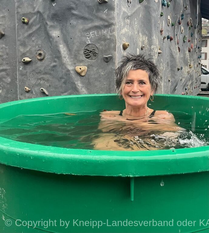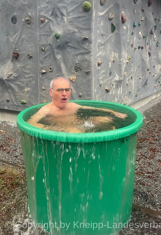 Nach intensiver Vorbereitung folgte der Höhepunkt des Workshops: das Eintauchen in die Kaltwassertonnen. Beeindruckende 14 von 16 Personen stellten sich der Herausforderung.