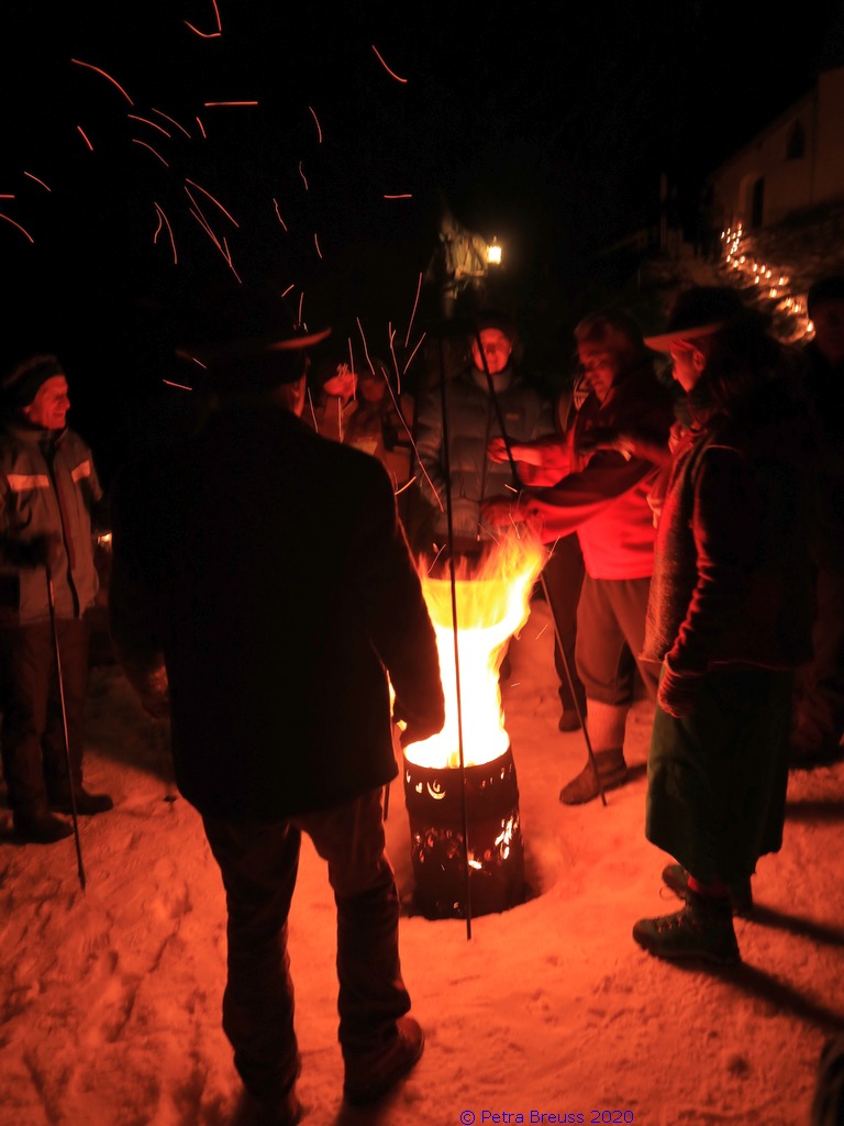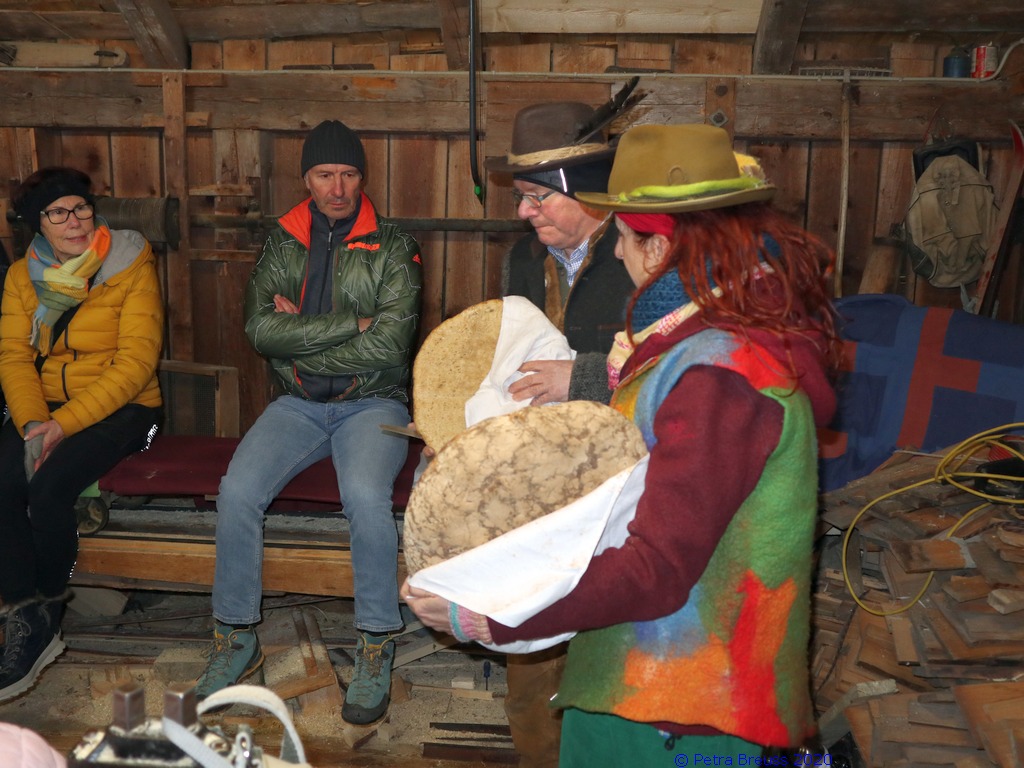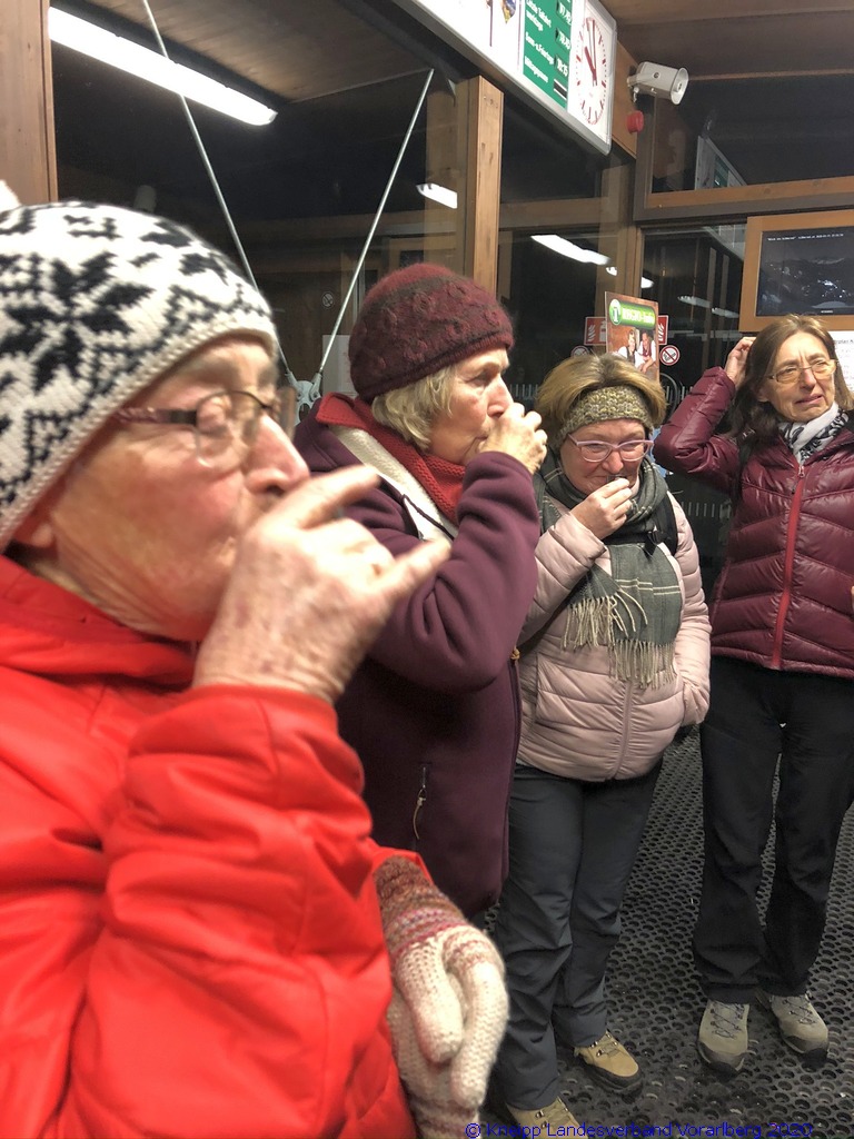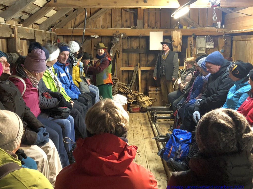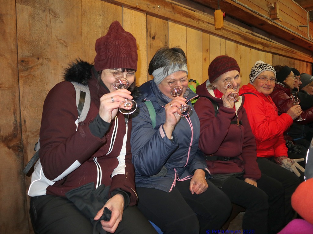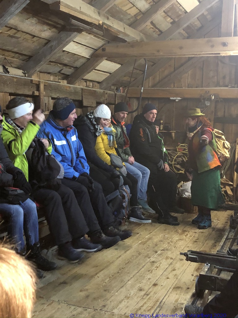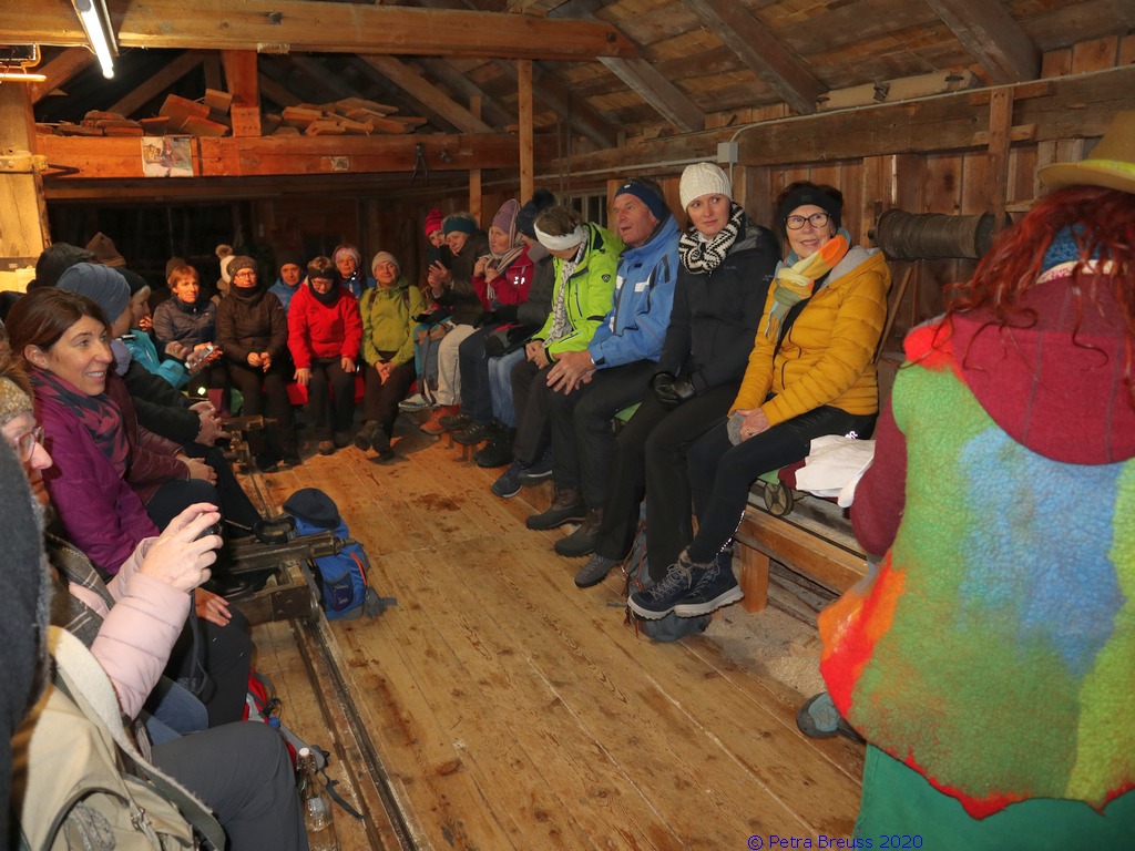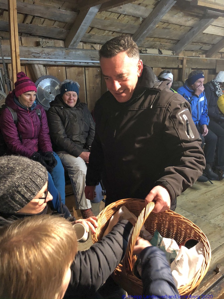 Auf einem wunderschönen Winterwanderweg mit herrlichem Panoramaausblick wanderten wir zur alten Säge. Zur Erhaltung der Gesundheit gab es selbstgemachten Enzian- und Salbeischnaps. Diese Stärkung war willkommen, bevor Hertha und Roland frisch gebackenes Holzofenbrot von Pauline mit uns teilten.