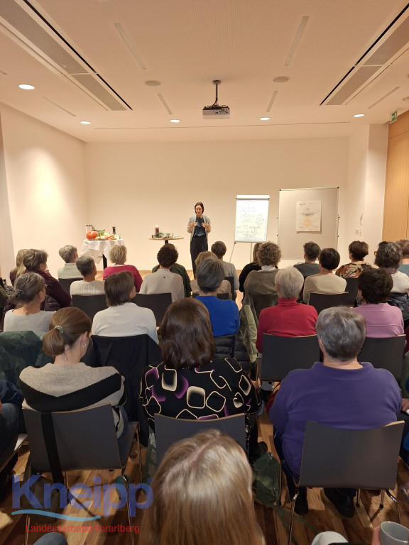 Der Vortrag im Vereinshaus Andelsbuch wurde von den Teilnehmenden als besonders anschaulich, inspirierend und leicht verständlich beschrieben. Viele nahmen konkrete Anregungen mit, die sich sofort in den Alltag integrieren lassen – vom Frühstück über die Auswahl wärmender Zutaten bis hin zu kleinen Ritualen, die Körper und Geist im Winter stärken.