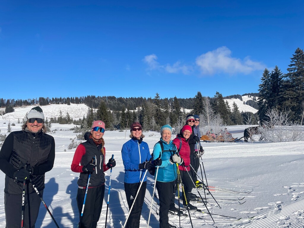 An drei intensiven Kurstagen, verteilt über den Winter, lernten die Teilnehmer weit mehr als nur Wandern auf Skiern. Am ersten Tag auf dem Bödele, bei erschwerten und eisigen Verhältnissen standen Materialkunde und erste Gleitversuche in der Ebene auf dem Programm. Über Weihnachten konnten die Teilnehmer das erlernte üben bevor in der zweiten Einheit, Schulung des Gleichgewichtes, Stockeinsatz, Beinabdruck und effiziente Fortbewegung sowie richtiges Bremsen und das bewältigen kleinerer Anstiege das Übungsziel war. Zum Abschluss ging es über traumhafte Loipen ins Grenzgebiet, bevor in der Moosalpe auf das Erlernte gebührend angestoßen wurde.